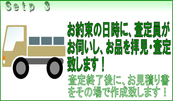スタッフがお客様のご自宅へお伺いしてお見積・買取りを致します。
